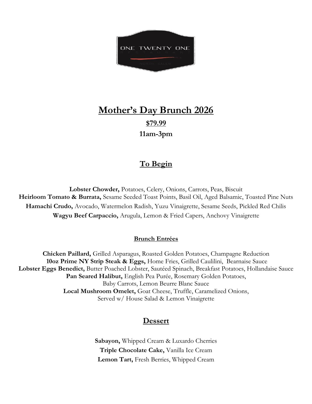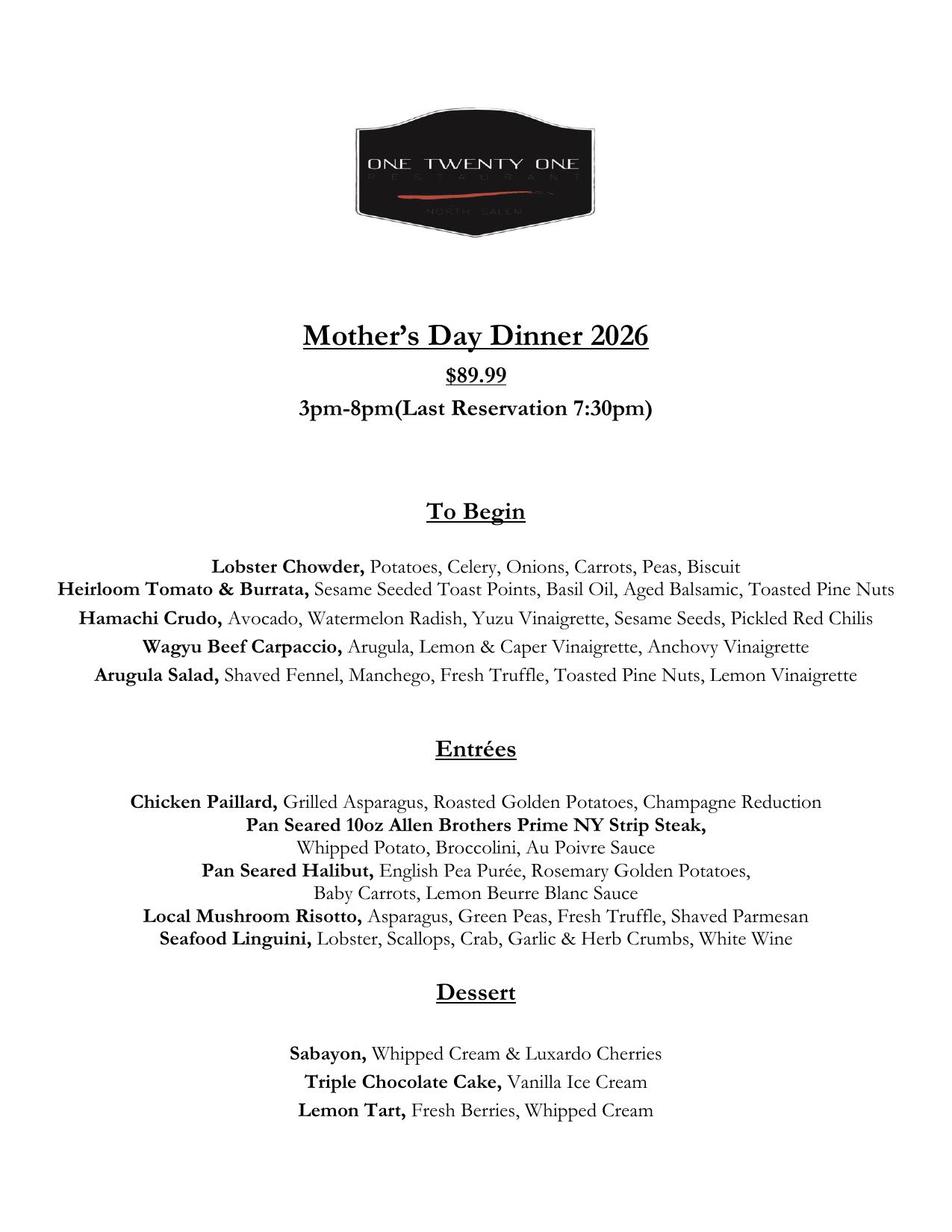 Mother’s Day Menu